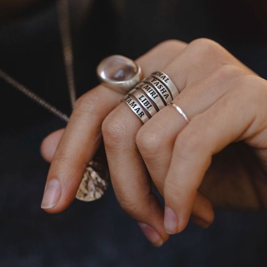 На одном кольце можно разместить одно или несколько слов на латинице, иврите или кириллице общей длиной до 10 символов.