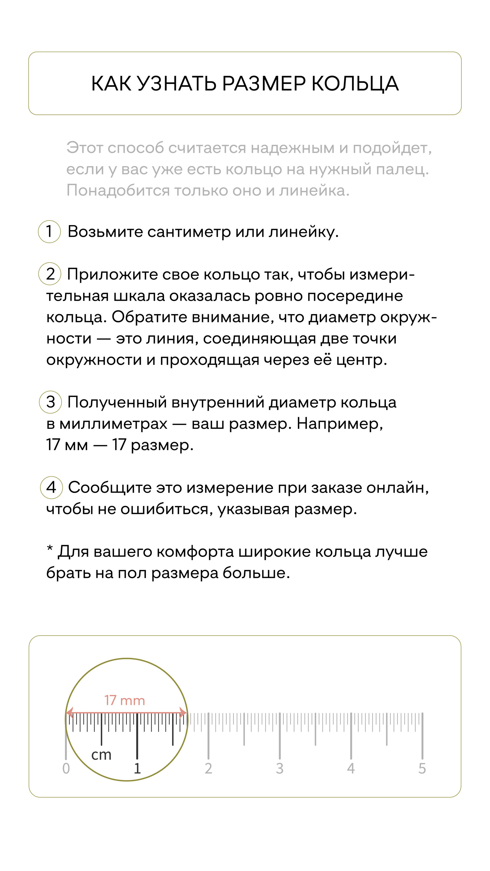 Мы подготовили для вас инструкции, которые помогут подобрать кольцо идеального размера ↓
